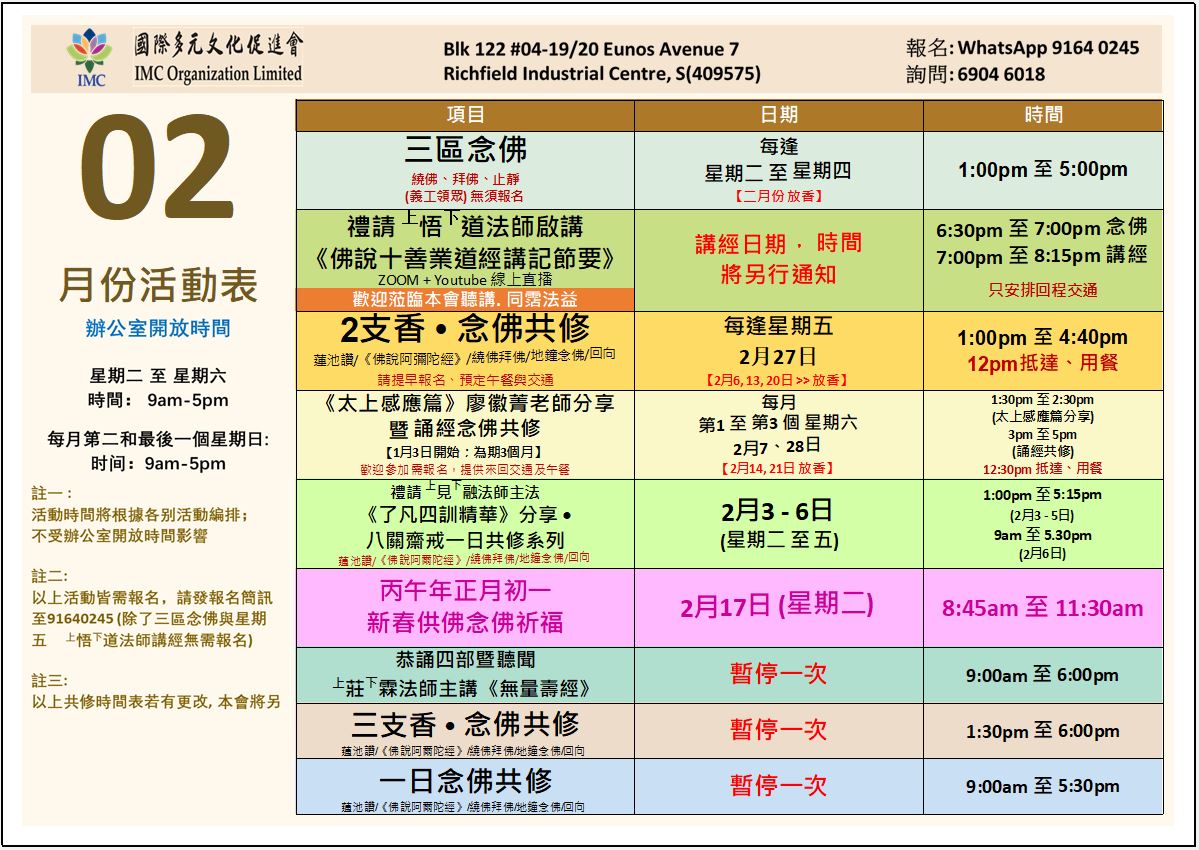 歡迎報名參加來臨2月27日 「星期五念佛兩支香共修」 2026年2月27日(星期五) 念佛兩支香 時間:下午1 […]