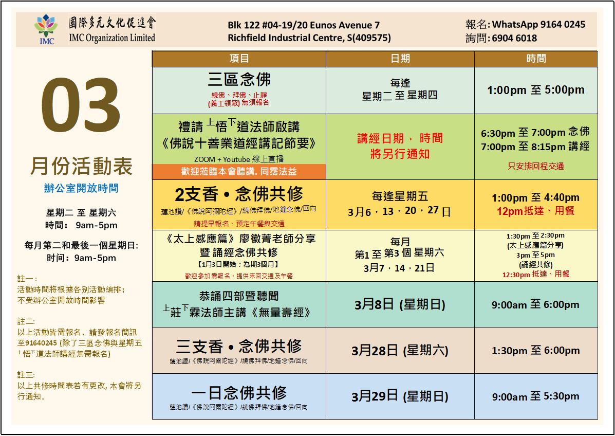 📣【2026年 3月份活動表】 參加本會所有活動請預先報名, 報名可WhatApp 91640245或詢問櫃台 […]